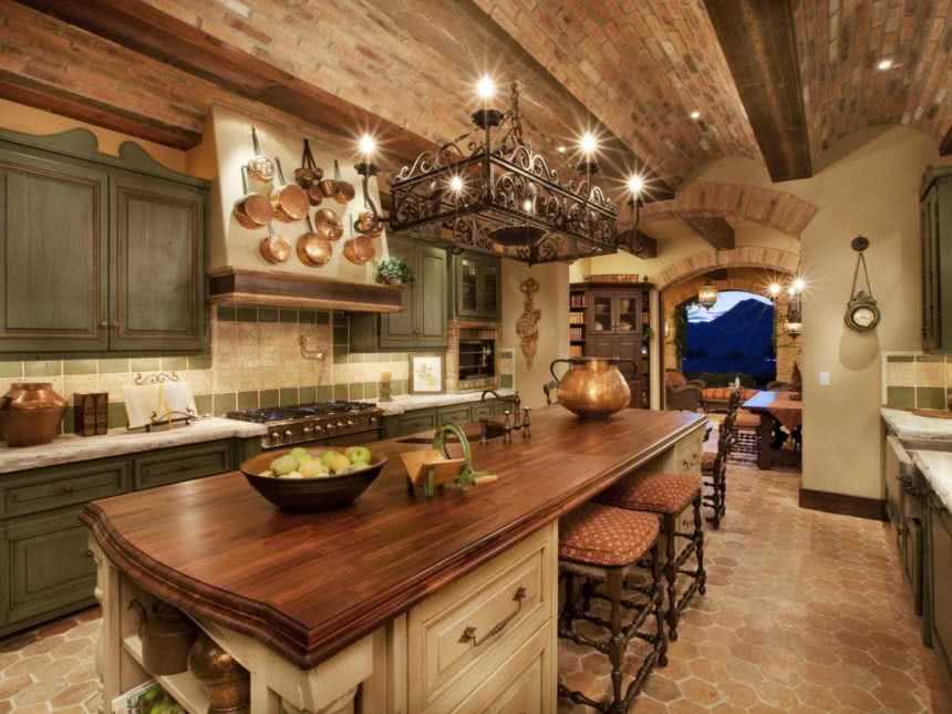 Этот стиль подойдет, если изначально пространство, отведенное под кухню, может похвастаться простором. Если же кухня маленькая, то объединив комнаты, можно реализовать кухню-гостиную или кухню-столовую.