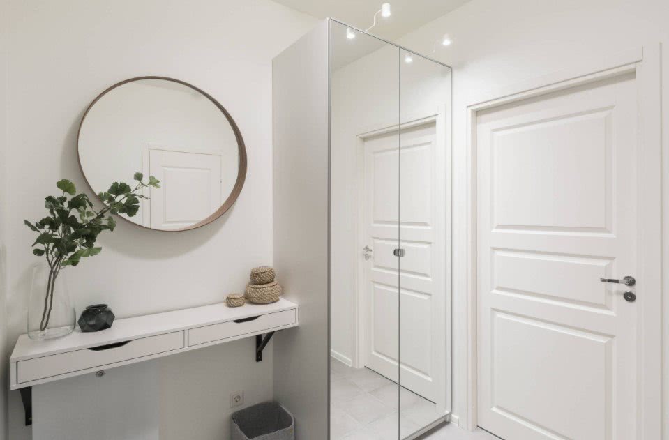 Белый цвет в оформлении прихожей имеет целый ряд преимуществ: