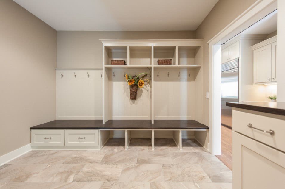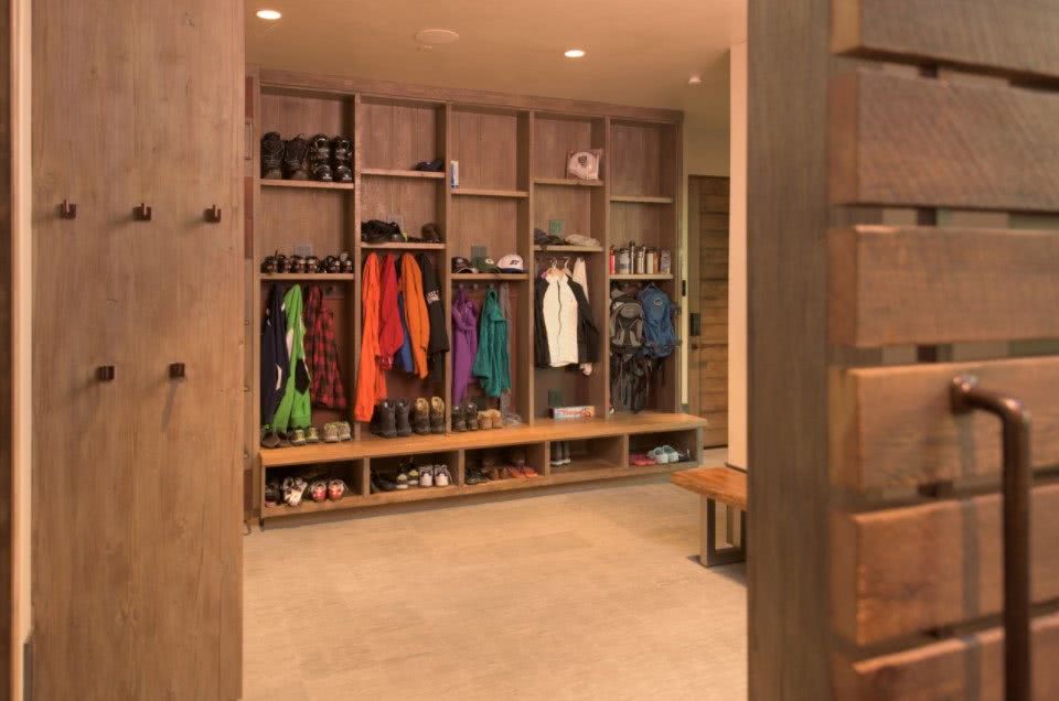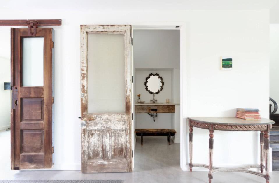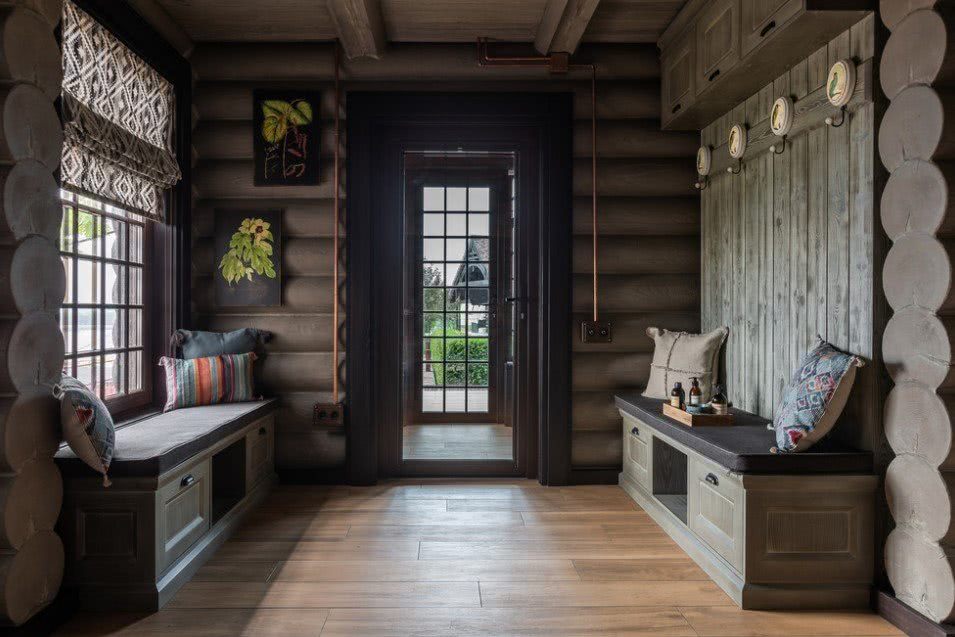 Этот стиль отличается грубостью и прямолинейностью форм. Зачастую используются оштукатуренные стены. Если в интерьере используется дерево, то оно имеет грубую обработку. Пол и потолок можно покрасить в белые тона. Проводку не прячут, она идет поверх стен. Ничего вычурного, здесь все просто. Вместо вешалки крючки и даже гвозди. Вместо ящика для обуви используется лавка. Кстати, она тоже может быть белой.