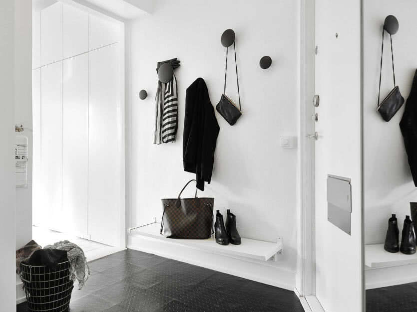 Попробуйте выбрать функциональные аксессуары, которые одновременно будут служить украшением. Необычный подвесной светильник, оригинальная бра или интересная вешалка — каждый из этих предметов сделает серую прихожую намного интереснее. Вы также можете повесить в коридоре магнитную доску, к которой прикрепите самые красивые фотографии семьи и друзей, придав договоренности индивидуальный стиль.