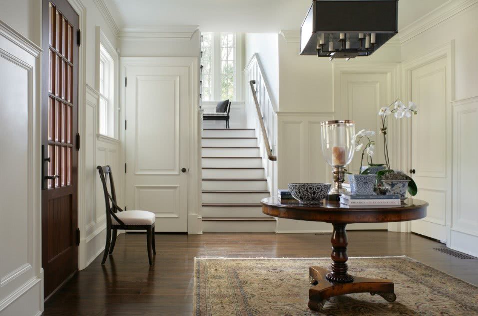 Каркасы, молдинги и другие деревянные элементы должны быть гладкими, а для поддержания гармонии в комнате хорошо применять те же оттенки к стенам и деревянным элементам. Сделайте ставку на приглушенные тона, так как вам будет легче подобрать к ним другие элементы декора, не рискуя создать впечатление хаоса. Немного безумия можно позволить себе при выборе цвета двери. Однако будьте осторожны, чтобы цвет двери не был слишком темным по отношению к стенам и планкам, иначе эффект может оказаться противоположным.