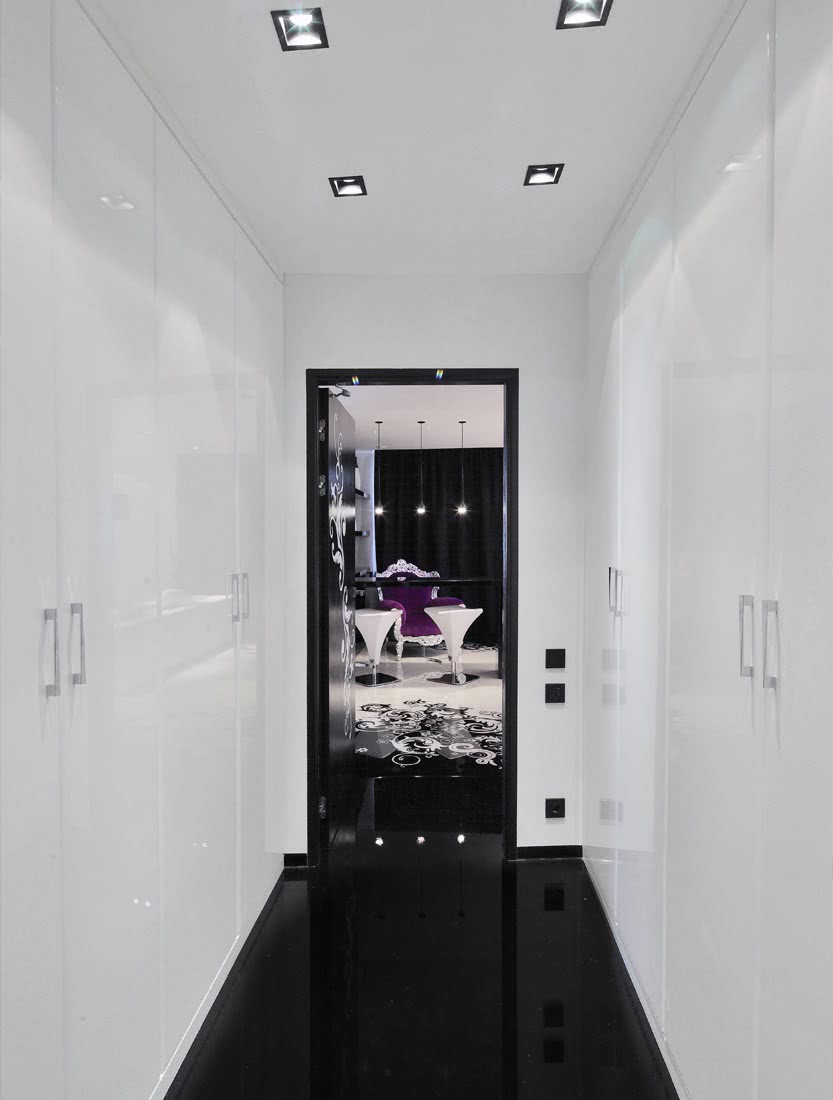 Интерьер узкого коридора в современном стиле может быть представлен несколькими вариантами. Все они являются ответвлениями одного направления в дизайне: