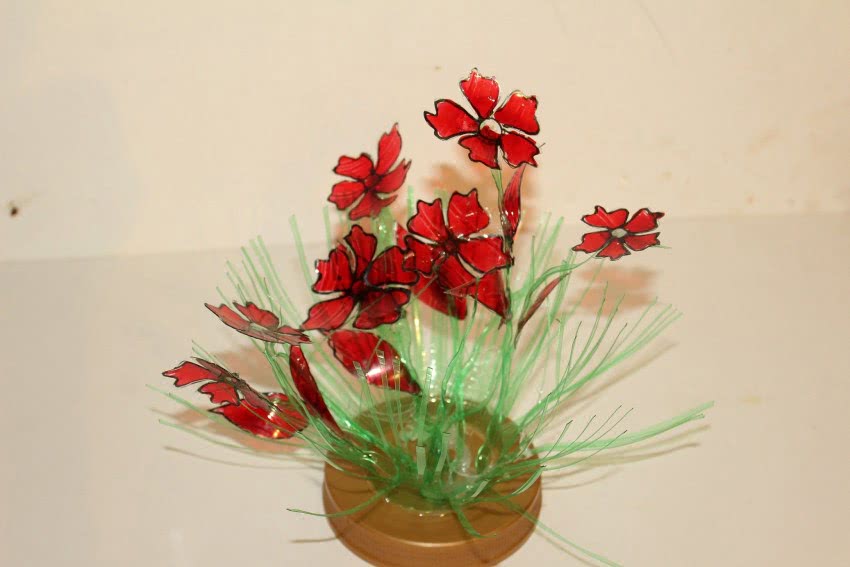 Пластик обычно применяют для изготовления уличных растений. Он устойчив к воздействию солнца и мороза, не боится перепадов температур, прочен и хорошо держит форму. Именно поэтому из пластика делают стволы деревьев и кустов, стебли горшечных растений(пионы, розы, цикламены), кроны самшитов, пальм, фикусов, лимонов, туй.