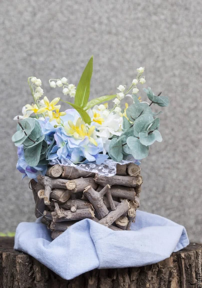 Формируем корзинку с искусственными цветами для домашнего интерьера