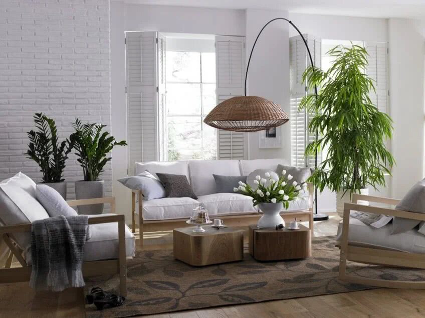 Модный тренд — флористическая стена. Оживляет интерьер, привносит ощущение присутствия природных элементов ландшафта. Уход за натуральной флористической стеной сложный, трудоёмкий. Искусственные растения смотрятся, как натуральные, но за ними значительно легче ухаживать.