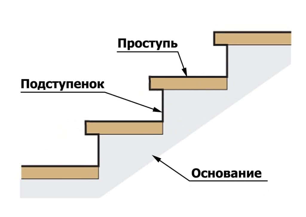 Ступени. Складываются из горизонтальной и вертикальной частей, которые называются подступенком и проступью. Подступенок выступает как опора для проступи, однако можно обойтись без него.