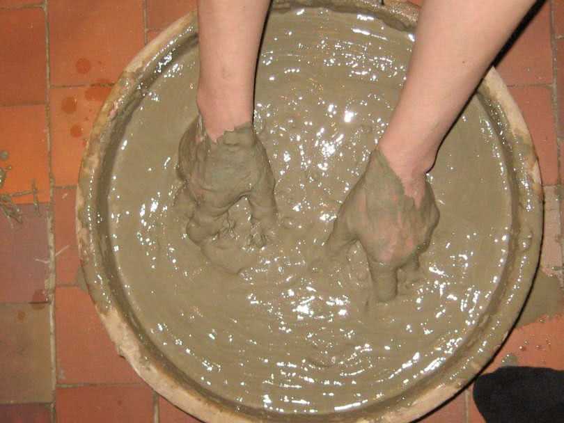 - Глиняно-песчаный раствор для кладки. Он состоит из красной глины без примесей, просеянного песка (речного или карьерного) и чистой воды. Глину можно накопать в ближайшем овраге или купить в строительном магазине в виде порошка.