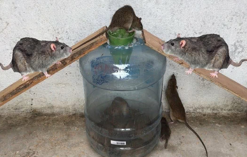 В чем состоит задача? Из одной планки и проволоки мастерят опрокидывающийся мостик. С краю мостка кладут приманку, ставят его на подготовленную емкость. Далее к конструкции изготовляют импровизированную лестничку. По ней животное и подберется к краю емкости. Только крыса попробует подступить к «лакомству», мостик опрокинется, и грызун упадет в емкость.