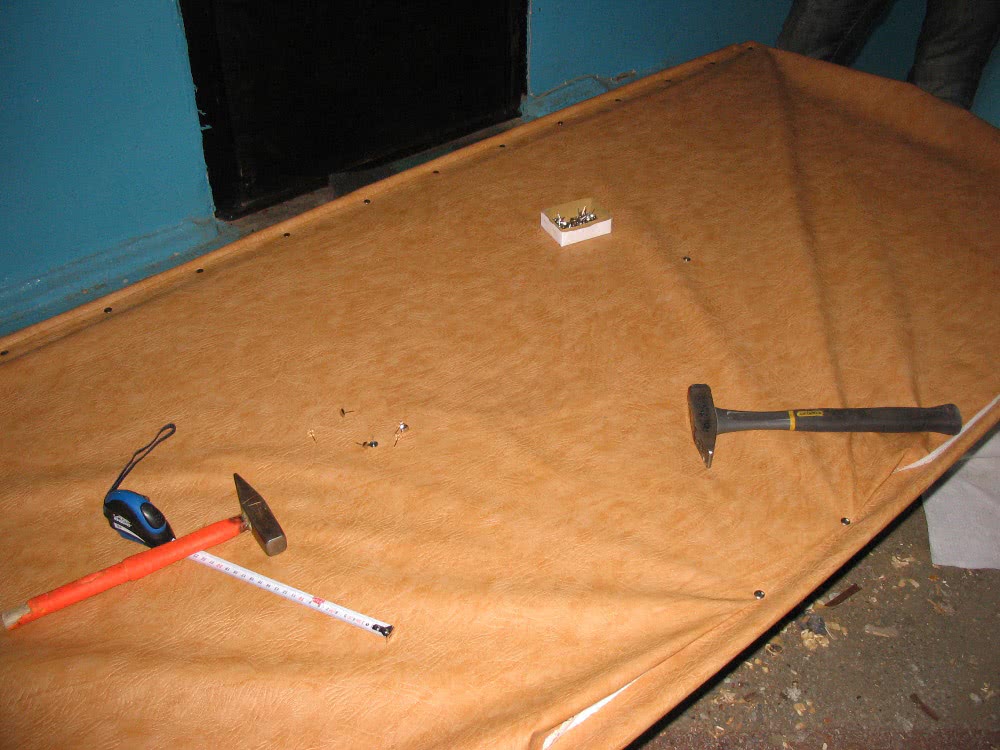 - укладка дерматина и его закрепление;