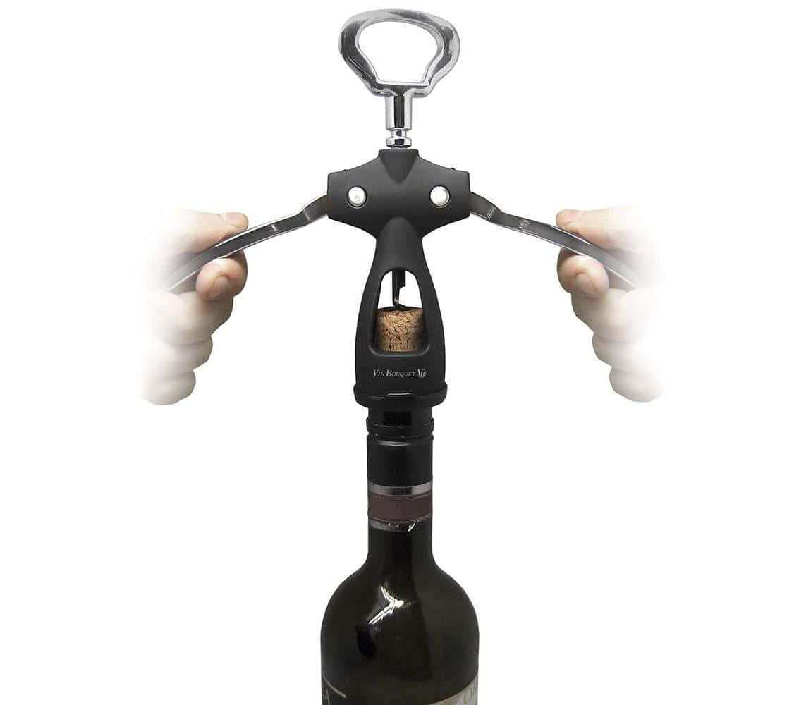 Когда рычаги изделия подняты вертикально вверх, модель напоминает человечка с воздетыми руками – любимым жестом французского генерала. Отсюда и забавное прозвище «Шарль де Голль». Преимущества – очень легко использовать, для извлечения пробки не требуется прикладывать усилия. Недостаток – штопор-бабочка не всегда справляется с глубоко посаженными пробками.