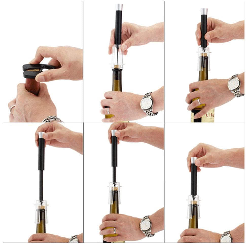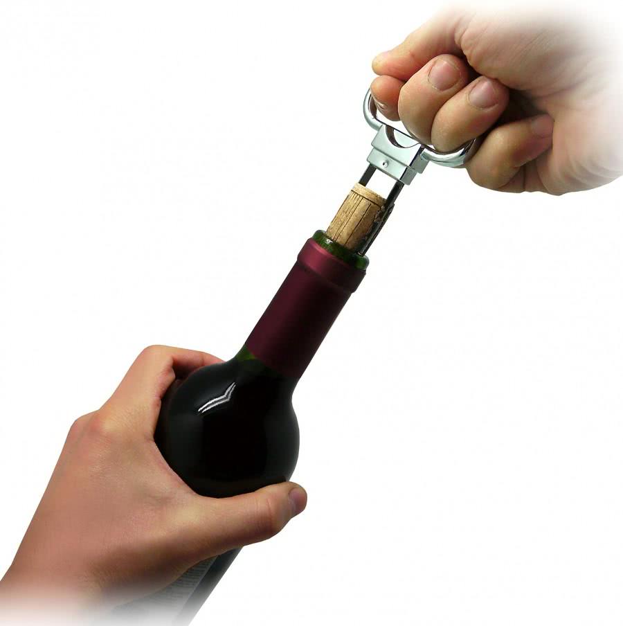 Смысл в том, чтобы вместо выдергивания пробки штопором протолкнуть ее внутрь, а уж чем вы будете это делать, не столь важно. Бывалые вполне могут открыть бутылку даже пальцем, не используя никаких дополнительных приспособлений, хотя это сильно зависит от того, насколько крепко пробка сидит в горлышке