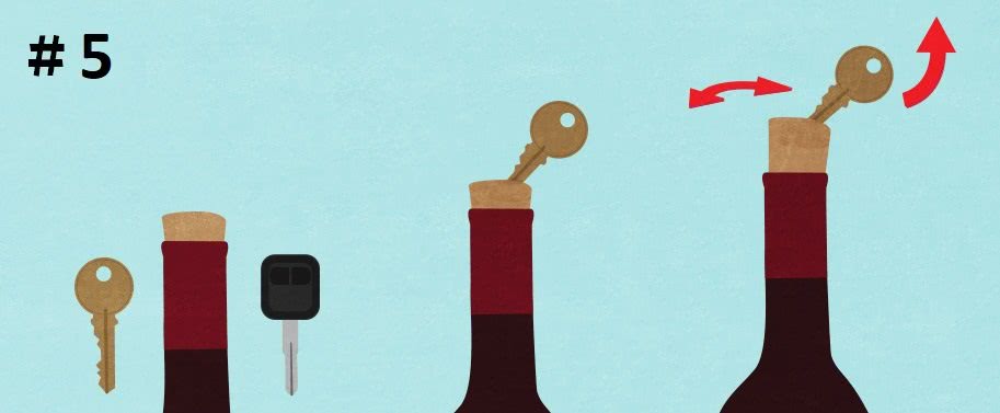 Первые два способа кажутся вам слишком медленными, и вы хотели бы знать, как открыть бутылку вина без штопора побыстрее? Что ж, есть масса вариантов, но это только на случай, если у вас есть хоть какие-то подручные средства и инструменты, чтобы заменить штопор.