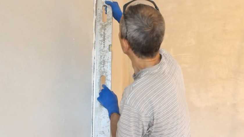 Изначально нужно проверить стены уровнем на предмет отклонения. Замеры надо делать по всей поверхности стены: как по горизонтали, так и по вертикали. При помощи правила следует найти впадины и бугры. Все найденные дефекты отмечаются маркером.