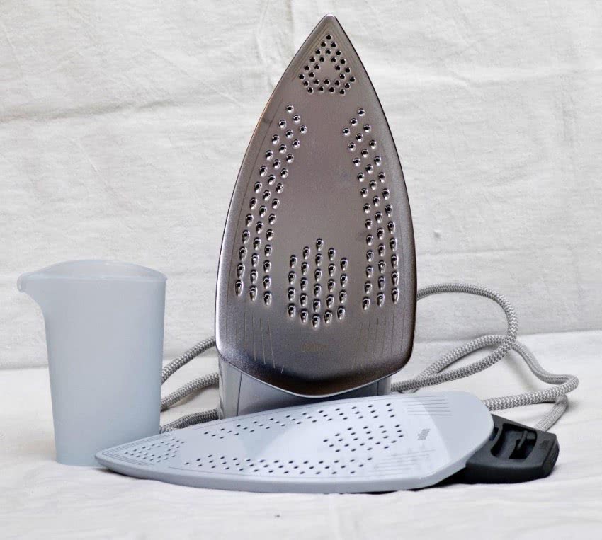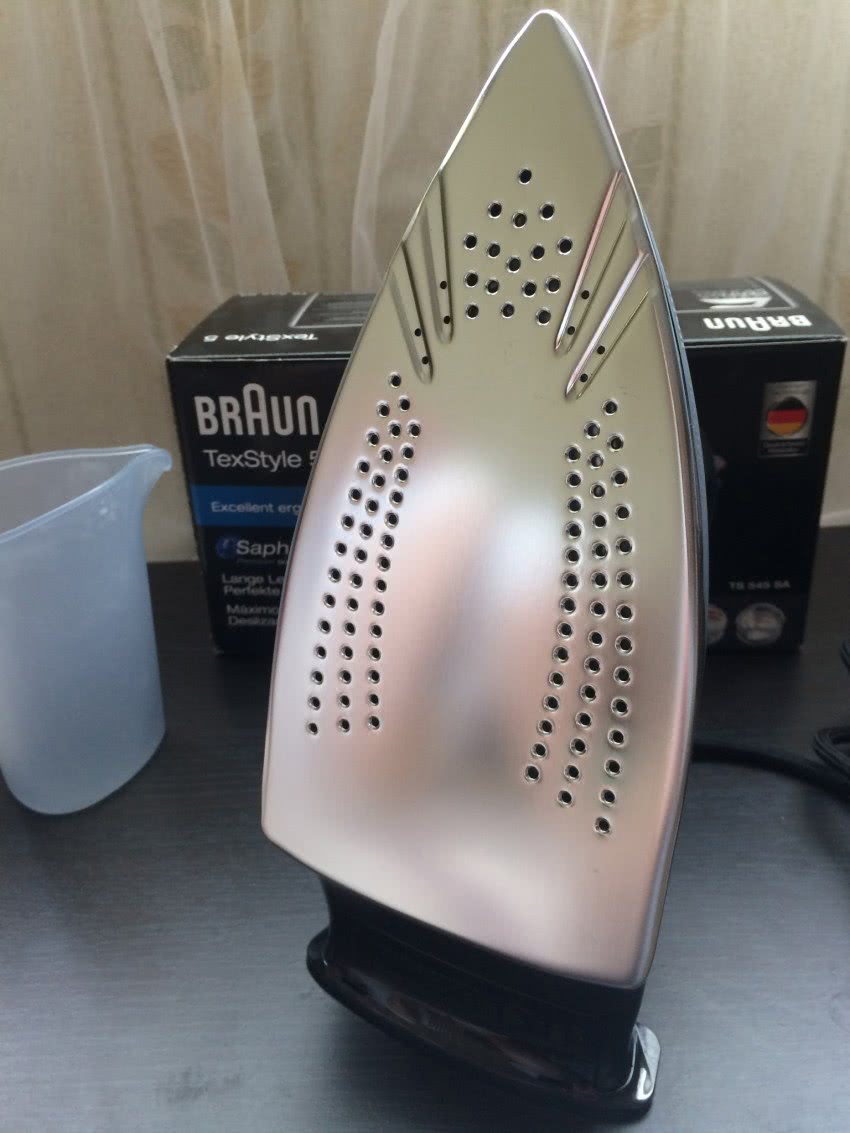 Обратите внимание, что чистка производится холодным способом — нагревать утюг не требуется. Затем протрите слегка влажной тряпочкой, проведите самоочистку паром для удаления загрязнений из отверстий и прогладьте небольшой кусок ненужной ткани для оценки результата
