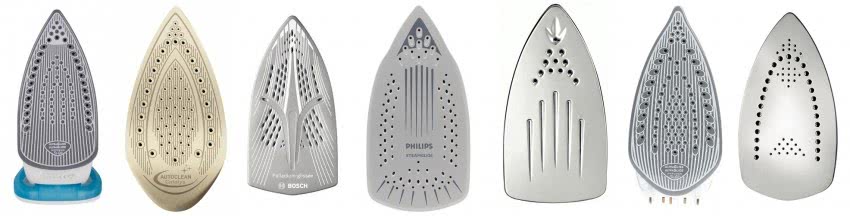 Эмалированные подошвы. Отлично разглаживают, легко чистятся, но стоимость велика.