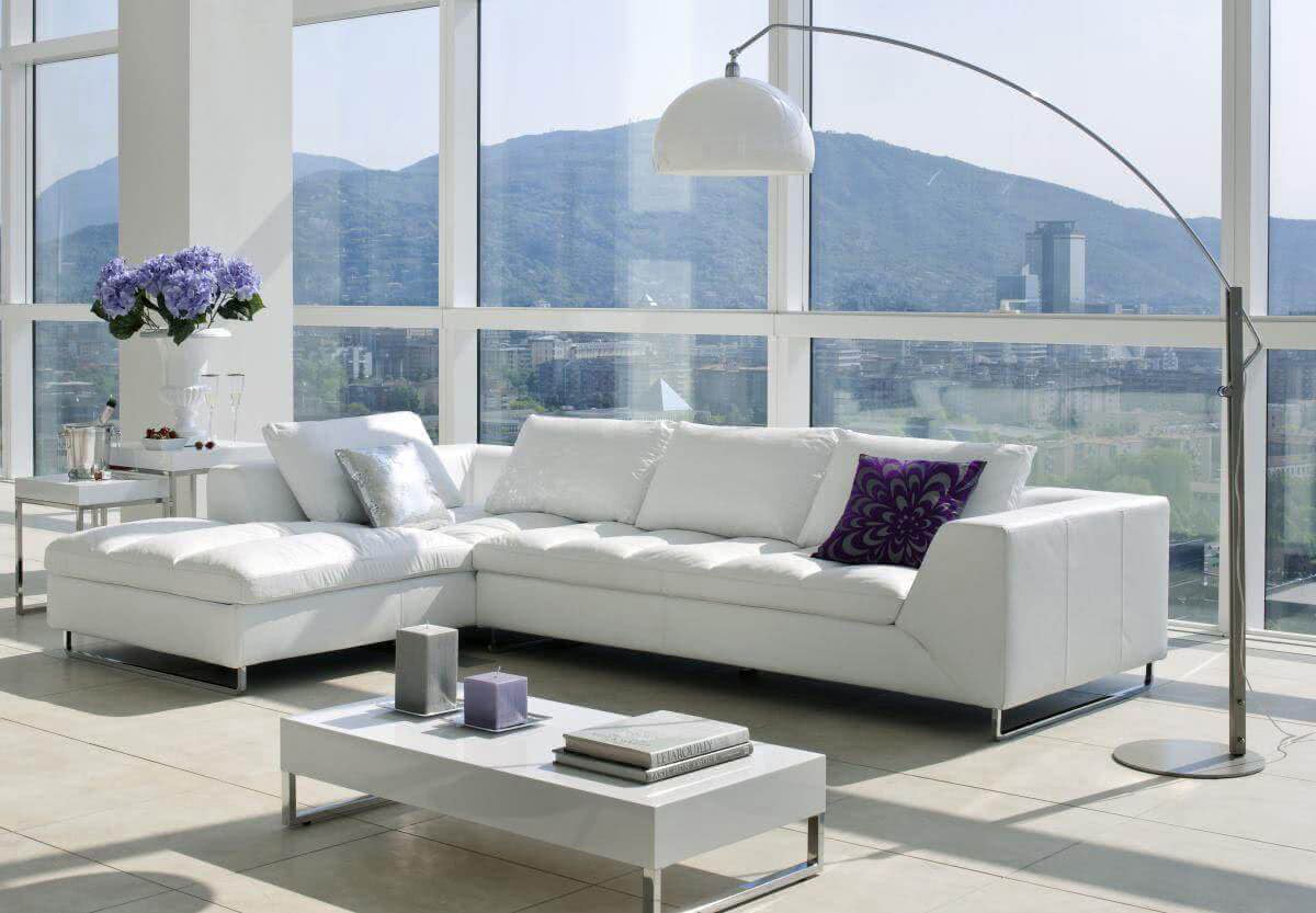 - Белый. Визуально расширяет комнату, поэтому отлично подходит для маленьких помещений. Такими диванами дополняют стили прованс, хай-тек, минимализм, скандинавском. Чтобы изделие не выглядело скучным, его дополняют яркими аксессуарами: подушками, пледами.