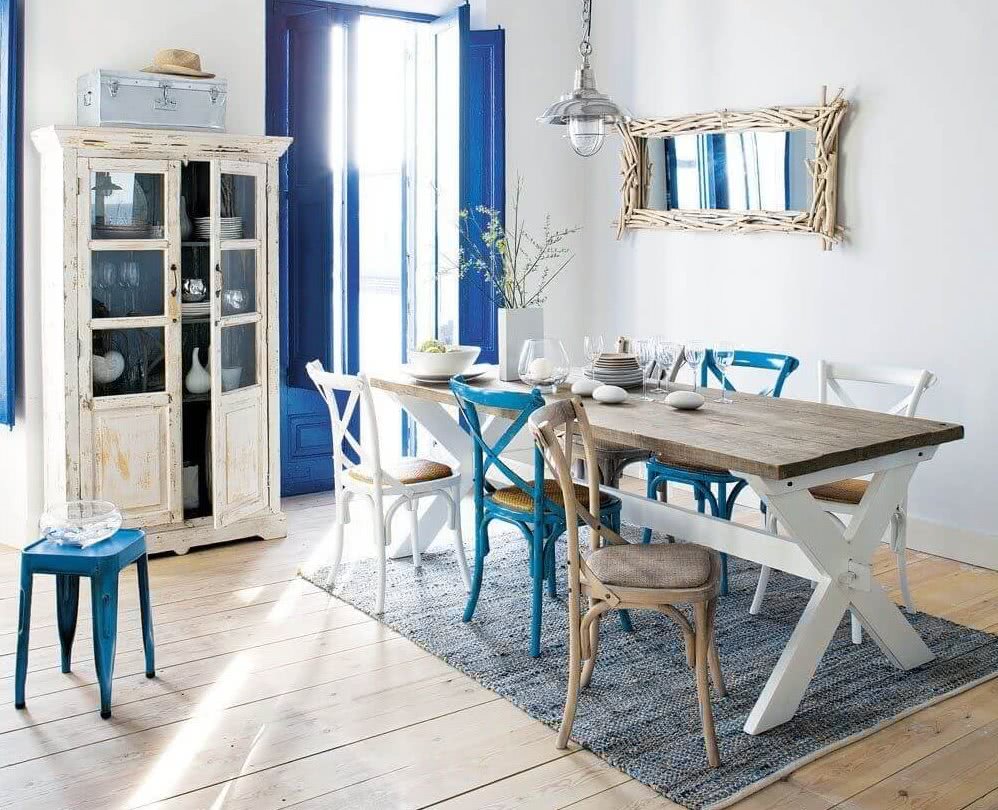 синий цвет также способен действовать успокаивающе, но если подобран темный оттенок, то его воздействие – угнетающее, поэтому важно не переборщить. Синий может использоваться в интерьерах в классическом стиле, если сочетается с золотым, или в морских интерьерах в сочетании с бежевым и белым;