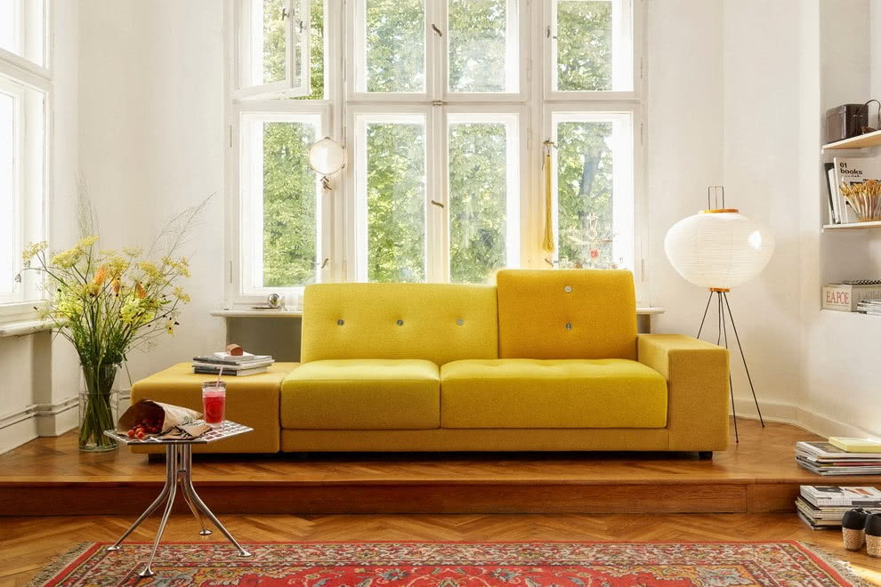 - Желтый. Диваны, сделанные в лимонном оттенке нередко можно увидеть в стиле ретро. Более сдержанные тона актуальны для классических или современных спален, гостиных. Небольшой солнечно-желтый диванчик может стать ярким акцентом детской.