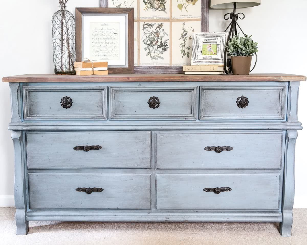 Особое внимание необходимо уделить мебели из МДФ или ДСП, так как на ламинированные покрытия нет смысла наносить составы с низкой адгезией. Качественно покрасить ДСП получается с помощью меловой краски для мебели или аналогичных специализированных марок на акриловой или алкидной основе