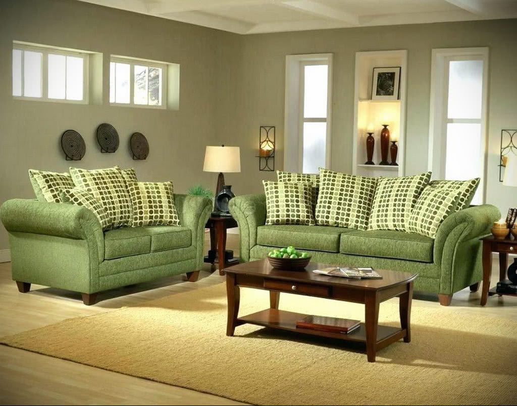 Вместе с зеленой мебелью можно использовать коричневый, желтый, белый и бежевый цвета как для других предметов мебели, так и для отделки;
