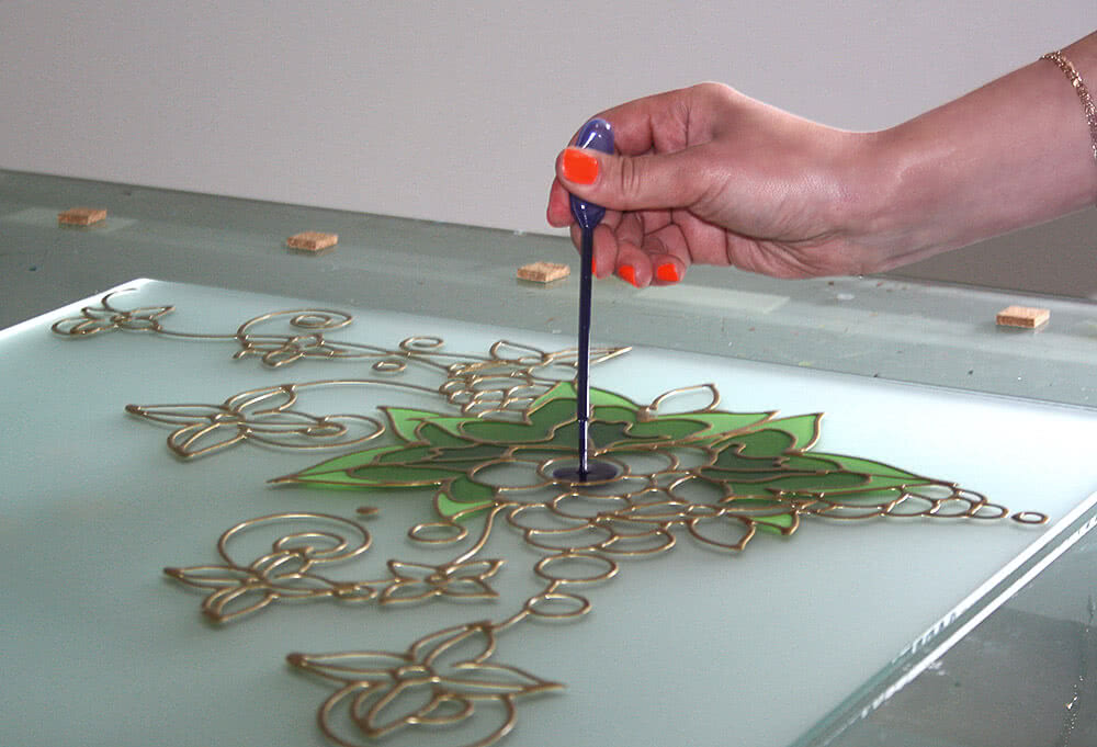Перед использованием красок для создания витража на поверхности стоит создать контур рисунка или узора, за который краска не сможет вытечь.