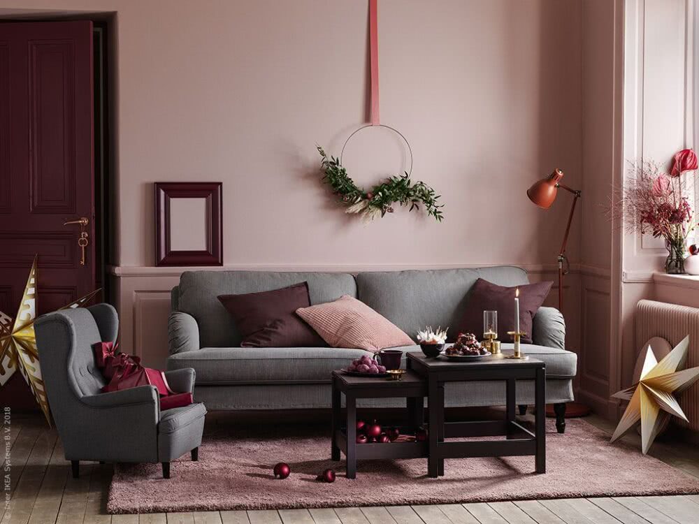 Бордовый цвет в гостиной