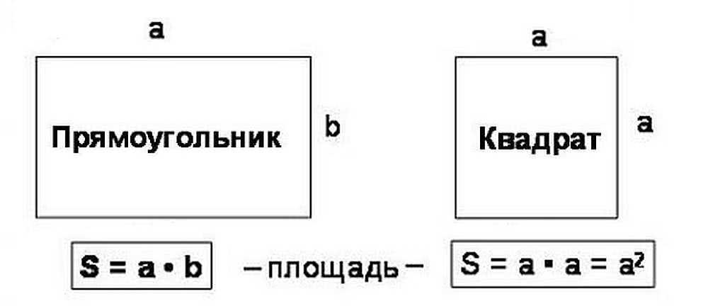 При помощи очень простых формул, можно рассчитать площадь прямоугольника и квадрата