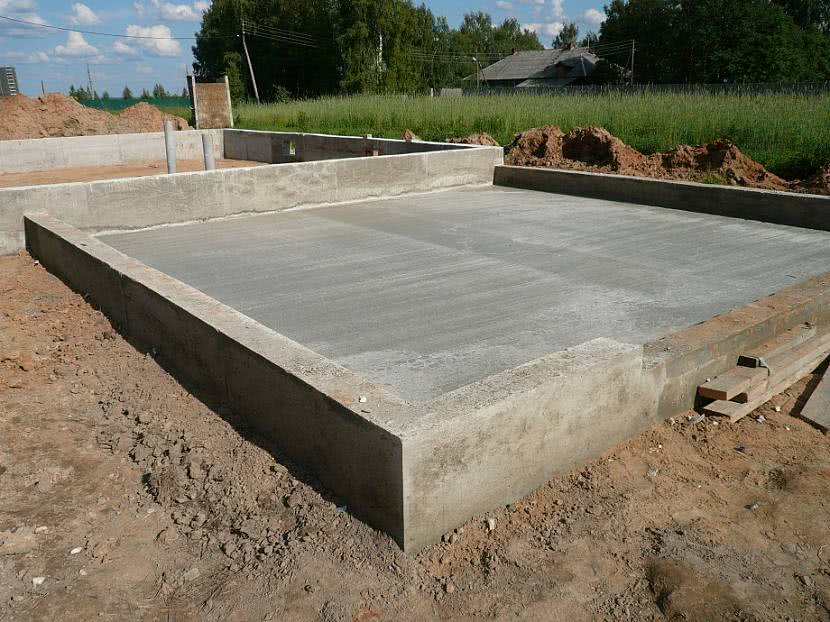 - из монолитной плиты, если грунтовые воды находятся на глубине меньше, чем 10 м. или земля под строением рыхлая и подвижная.