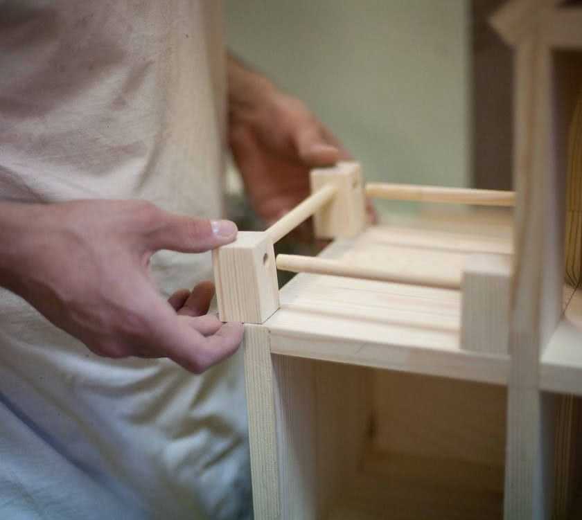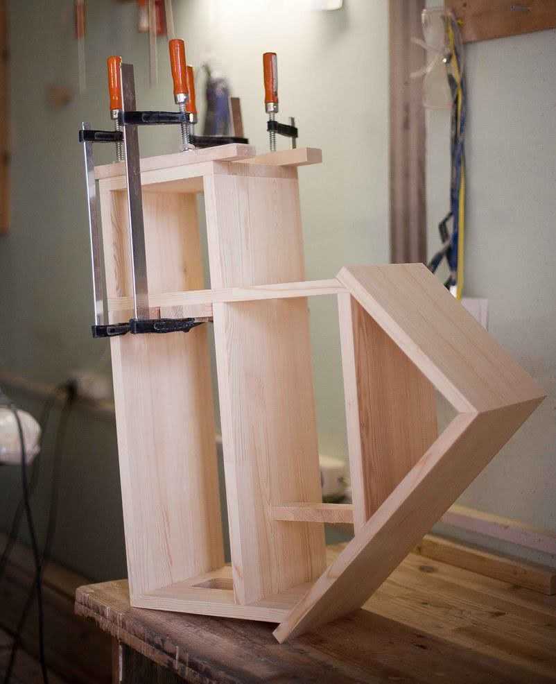 - Склеить детали конструкции или зафиксировать при помощи мебельных уголков.