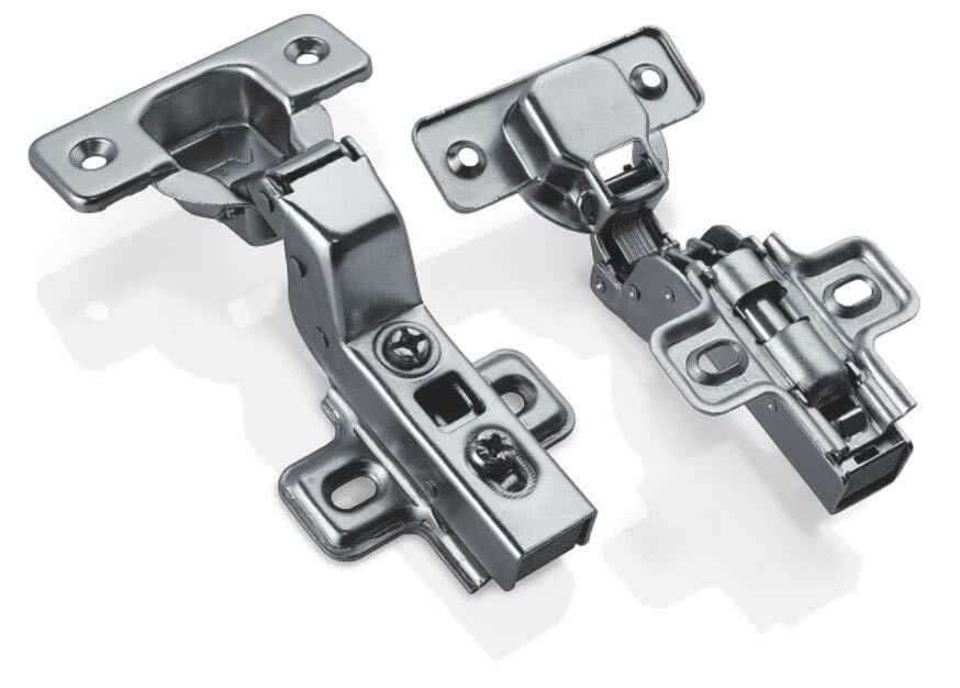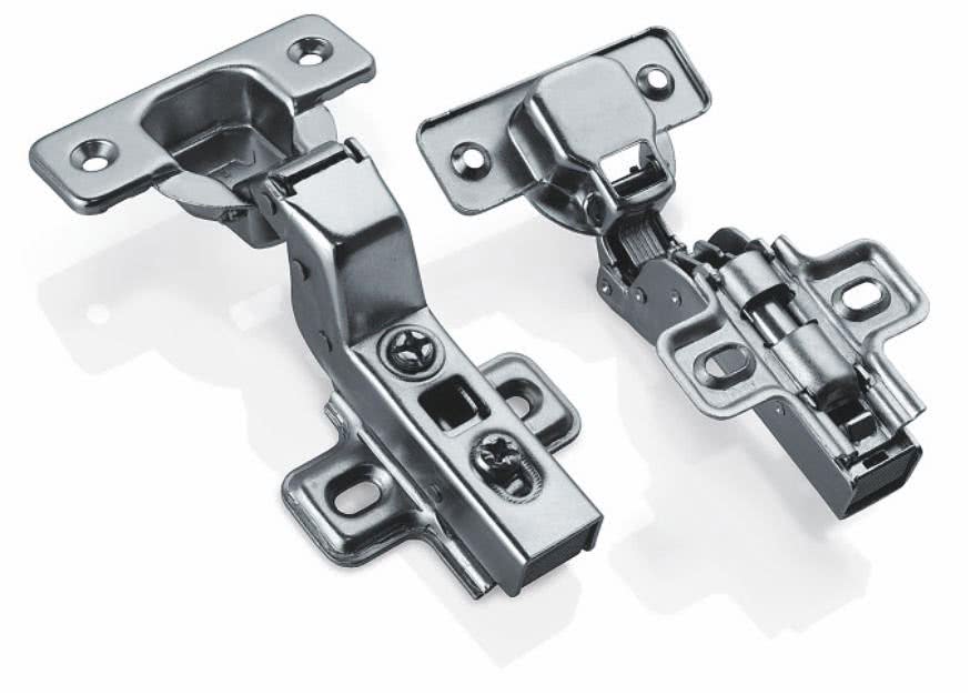 - кроме петель, состоящих из 4 шарниров, в практике сборки мебели используют крепежные устройства, состоящие из 2 частей, которые соединяет ось;