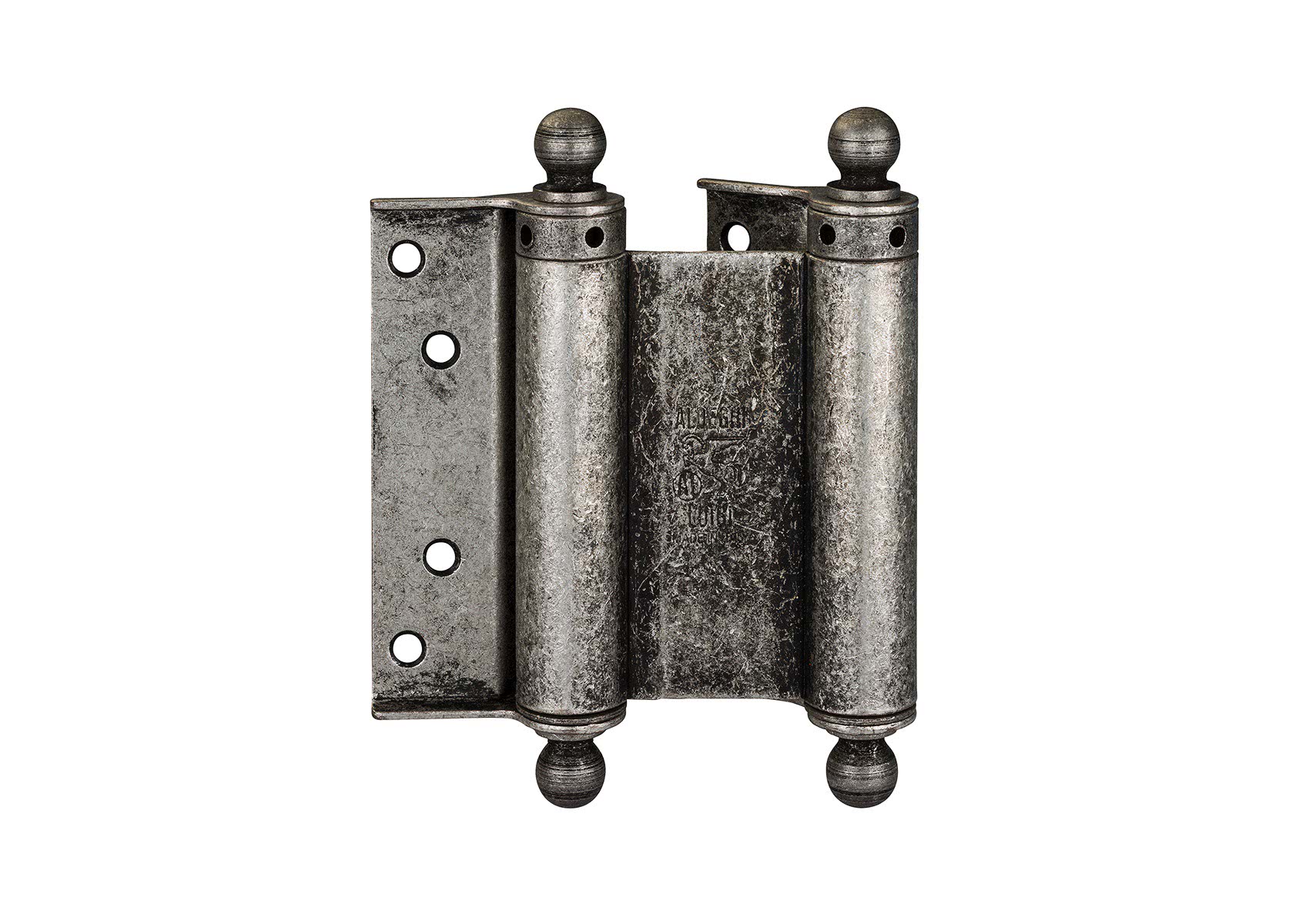 Двухсторонние петли используют чаще в общественных зданиях с большой проходимостью. Их особенная конструкция позволяет открывать двери как на себя, так и от себя. Визуально они напоминают карточные петли, но имеют три пластины. С двух сторон дополнительной третьей пластины расположены две оси вращения, благодаря которым полотно и открывается в обе стороны.
