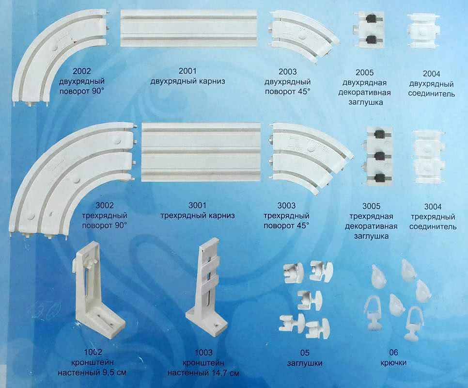 Любой тип карниза, вне зависимости от материала и вида крепления, подразделяется на однорядные, двухрядные и трёхрядные конструкции: