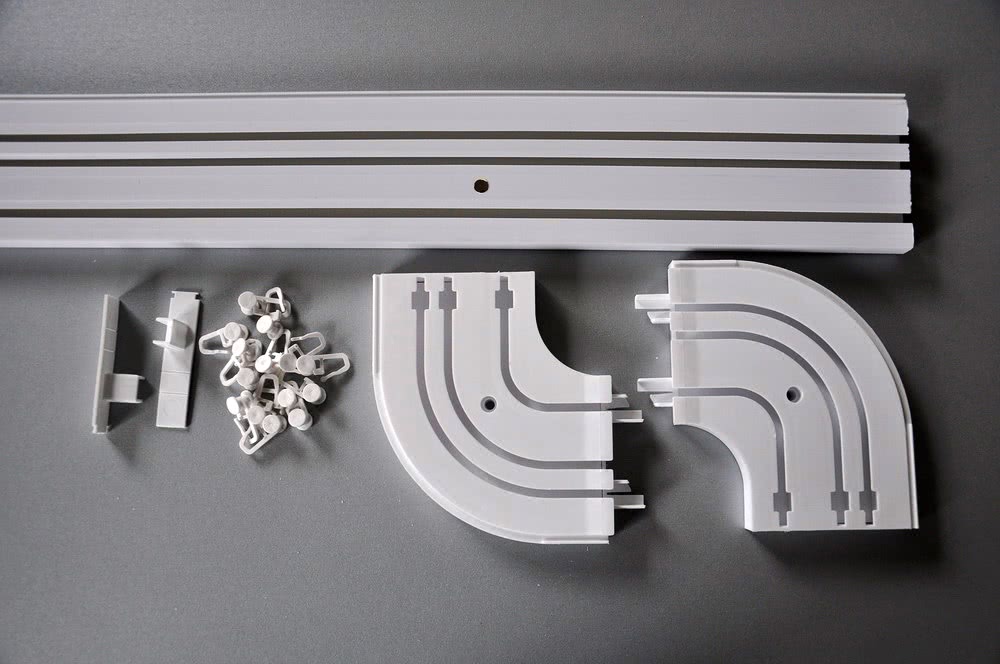 Полая внутри шина карниза может иметь от одной до четырех продольных дорожек. Это позволяет крепить к ним несколько рядов штор и тюли.