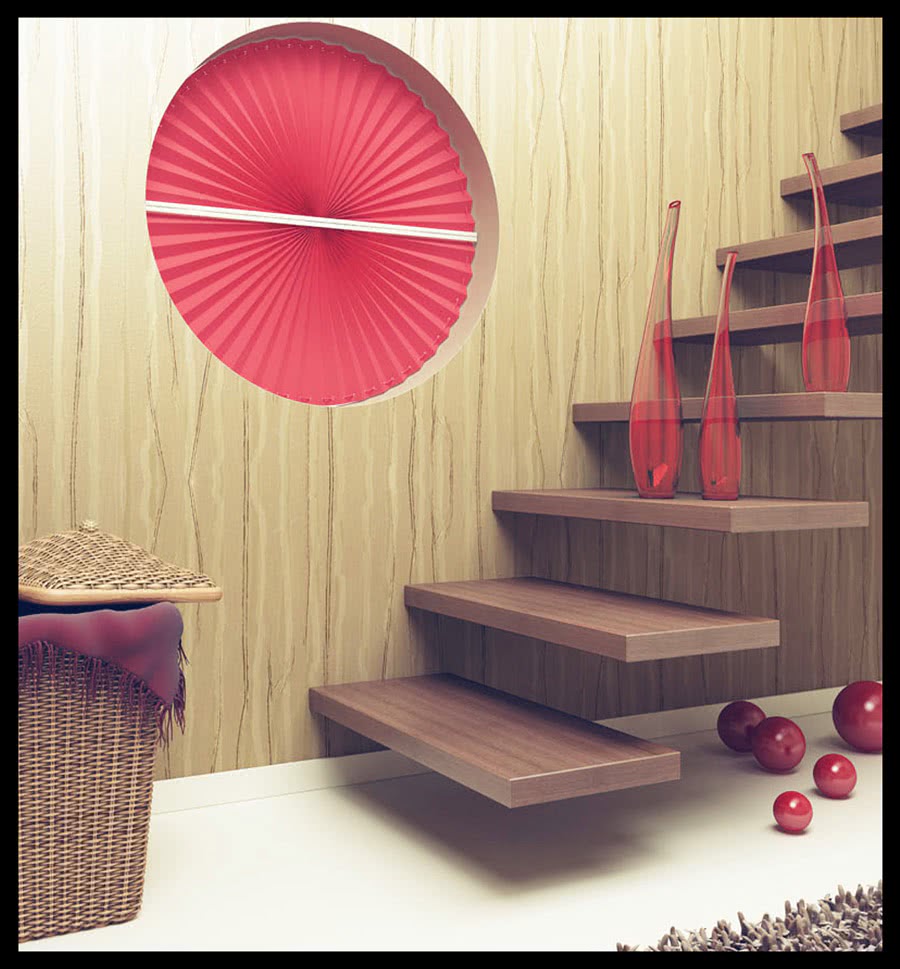 Однако в случае с круглыми окнами плиссированные занавески могут идти веером от центра оконной конфигурации. Подобное оформление будет функциональный и минималистичным, поэтому подойдет для дизайна кабинета или кухни. Также веерная развертка плиссе поможет в случае с арками. А для треуголок лучше взять скошенную форму.
