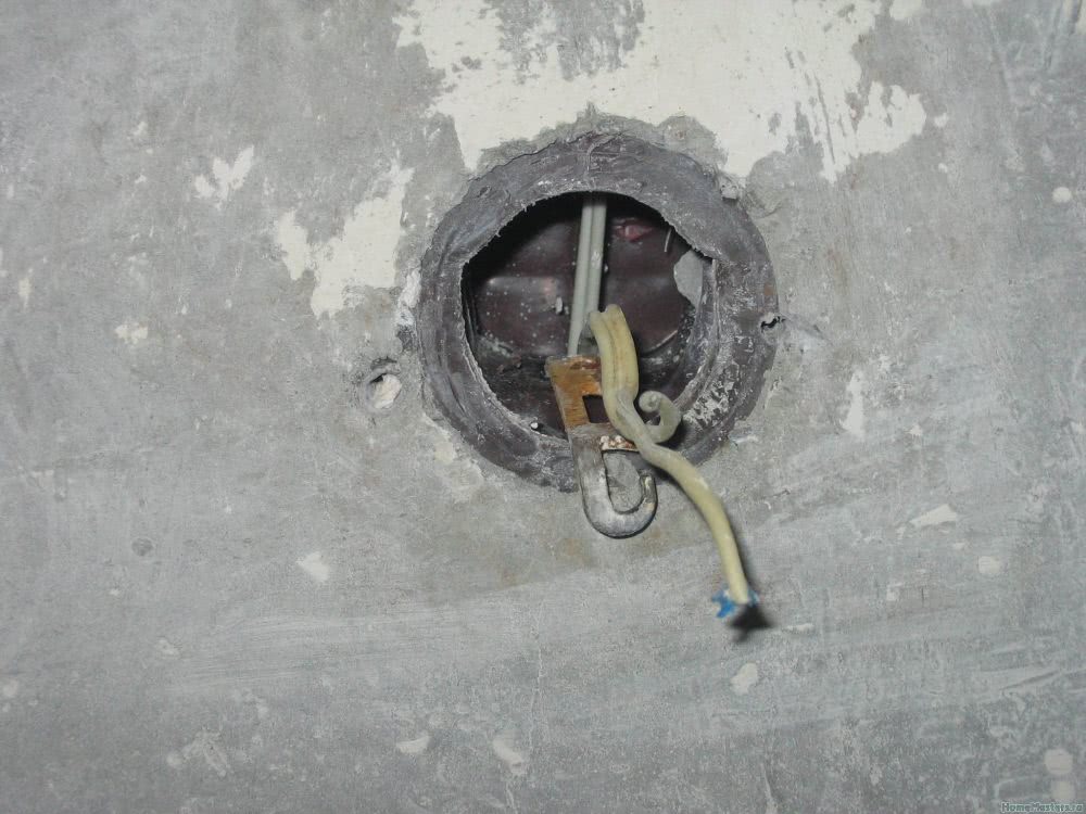 Стандартный ввод электрического провода для подключения освещения осуществляется посередине комнаты через отверстие в потолке диаметром 5-7 см. В бетонной плите внутри полостей при строительстве дома кабель пробрасывается к выключателю и подключается к общей сети. Герметизация этих каналов чаще всего не выполняется и по ним с легкостью распространяются звуки и запахи из соседних помещений. Замена люстры очень хороший повод устранить этот недостаток.