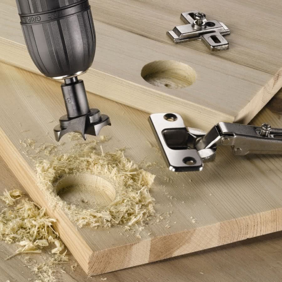 Как правильно установить подобные петли на дверь? Эта вариация фурнитуры крепится не так просто. Без фрезера и дрели не обойтись. Помимо подготовительного процесса, стоит позаботиться о помощнике, который будет периодически поддерживать короб или полотно двери. Пошаговый алгоритм действий: