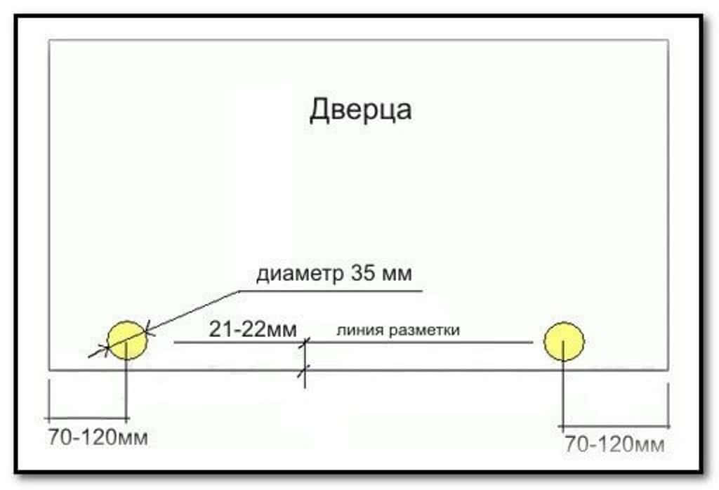 - Прикладывается петля по отметке к торцу, очерчивается контур, отмечаются места для сверления;