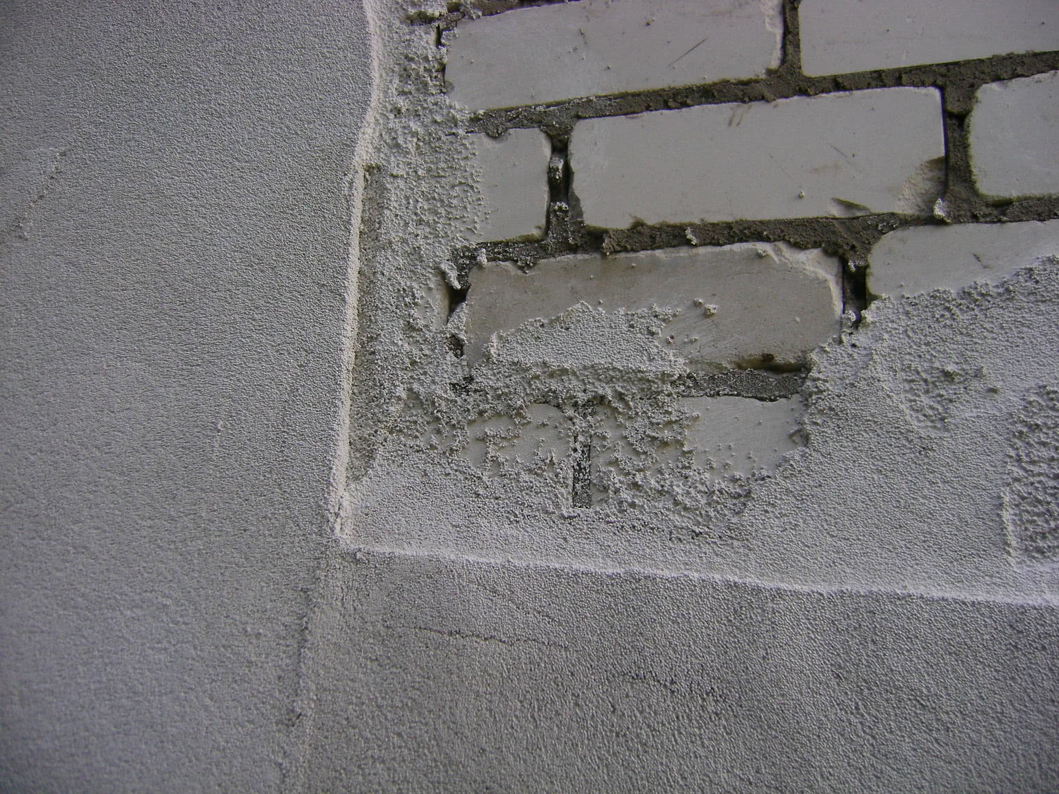 Глубокие выемки и трещины в стене заделывают отдельно цементным раствором и дают хорошо высохнуть.