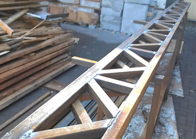 Рассмотрим подробнее изготовление ферм из профильной трубы сварным методом.