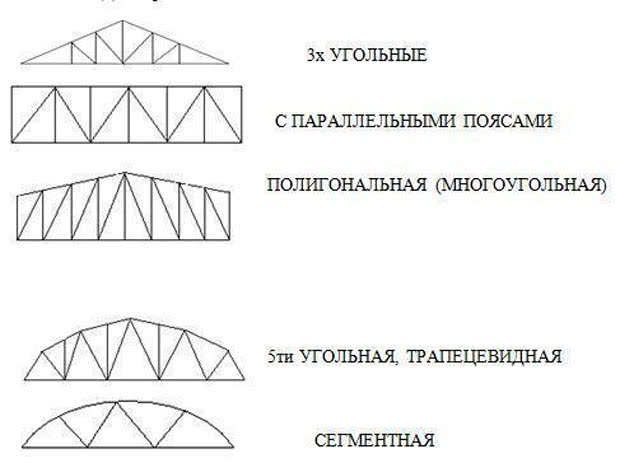 По форме фермы из стальных профильных труб можно разделить на: