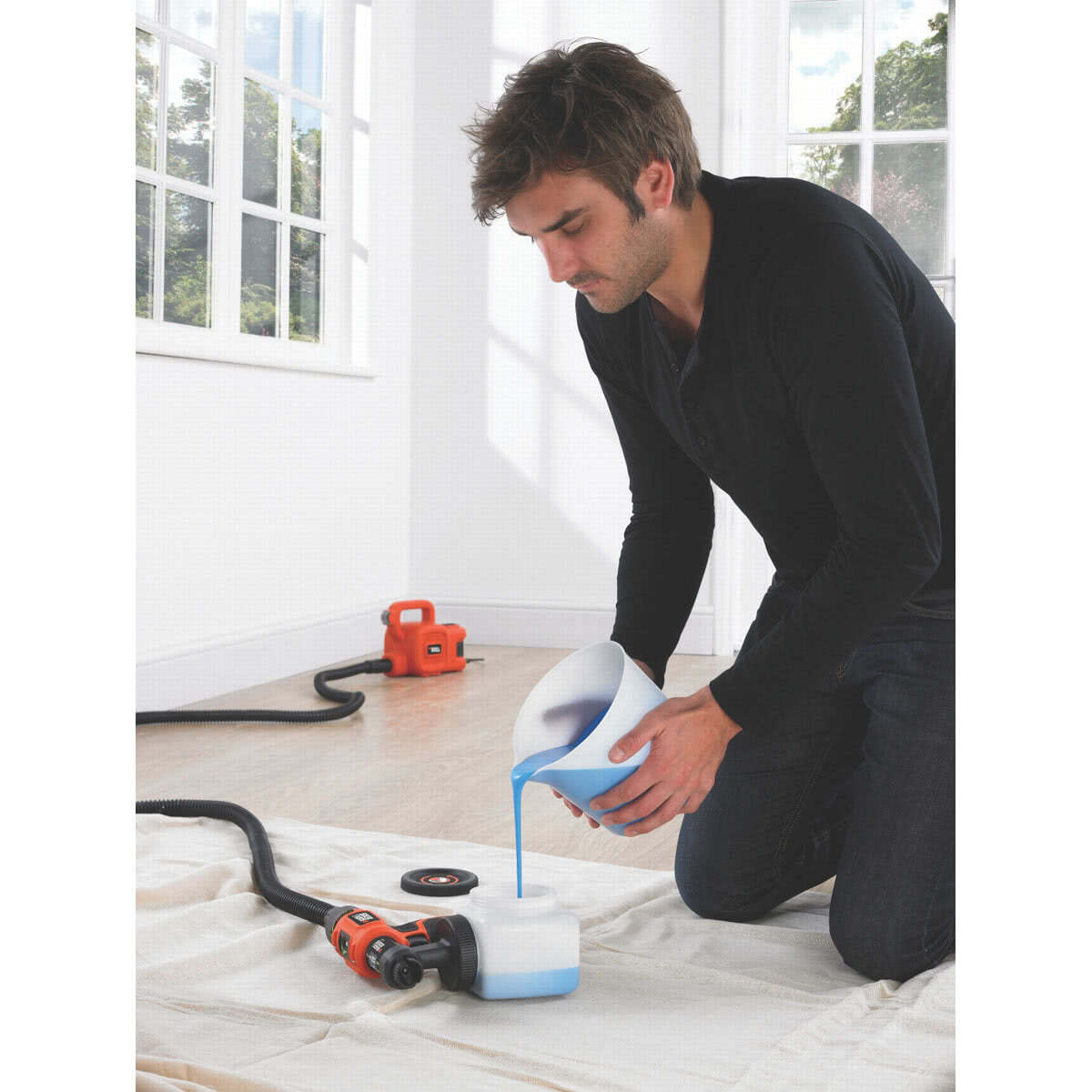 Затем разбавленный состав ещё раз хорошо размешивают и вливают в бачок. Аппарат включают и испытывают на малозаметном участке поверхности или на образце. Выход краски из сопла должен быть равномерным и представлять собой мелкодисперсный туман. Если вместо него появляются капли и брызги, нужно поменять сопло на большее либо ещё немного разбавить краску.