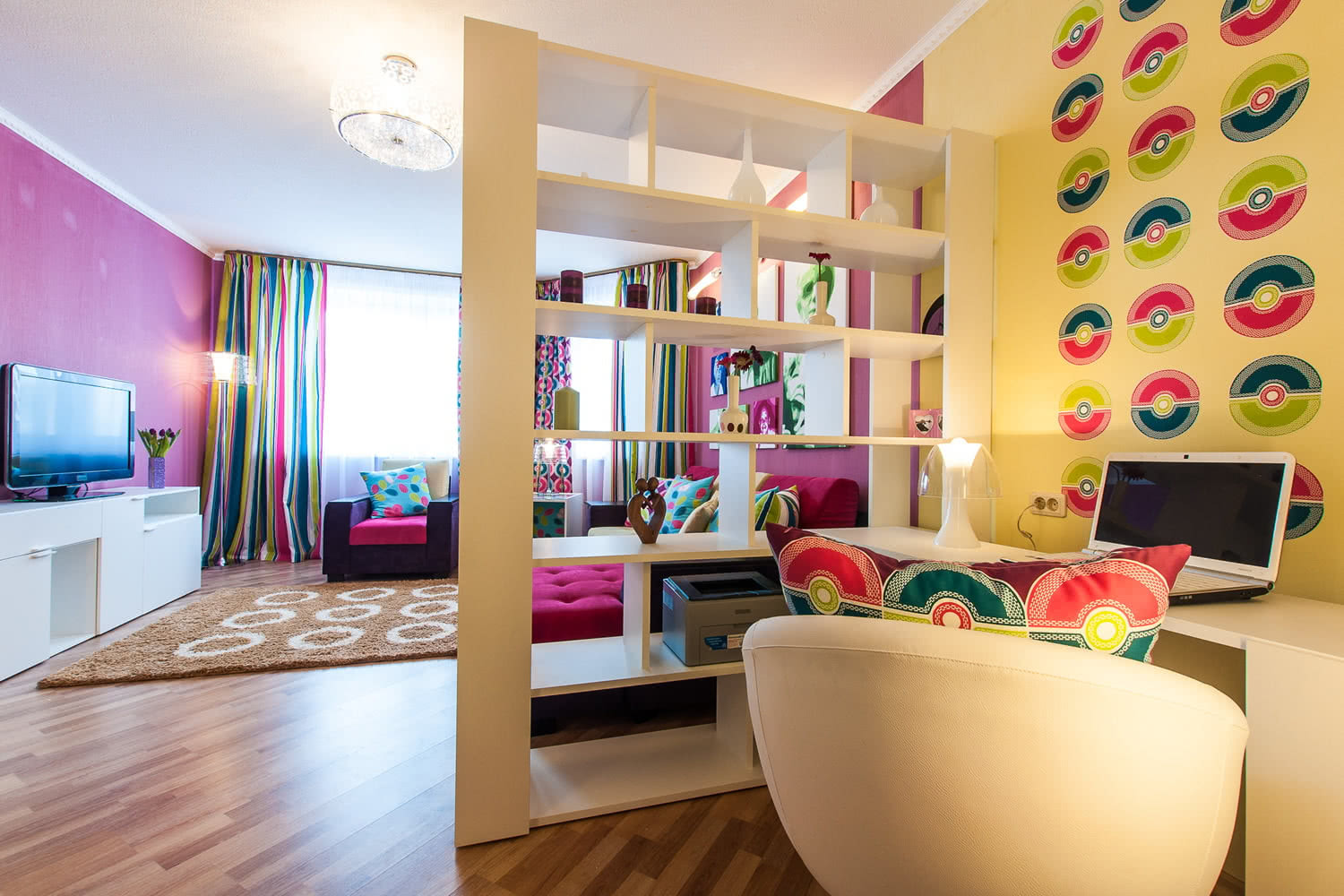 Фотогалерея: варианты зонирования в дизайне гостиной, спальни и детской