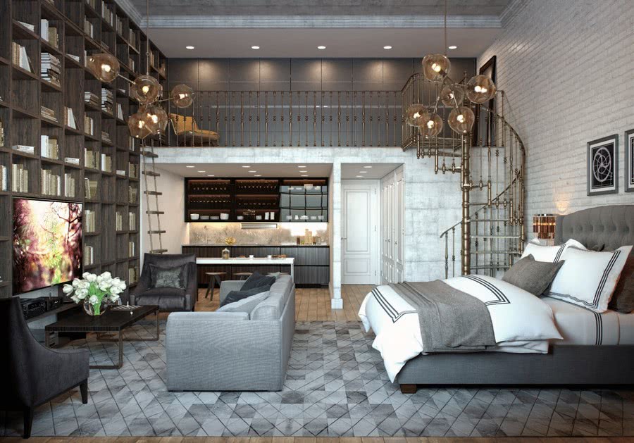 Одним из таких приемов является объединение спальни и гостиной в одно помещение.