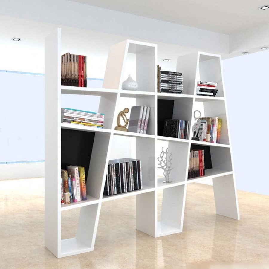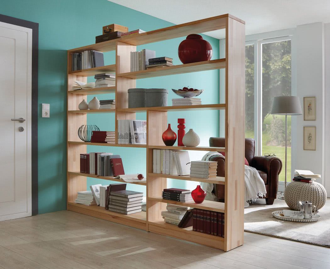 Размещайте книги в шкафу-перегородке в разном порядке.