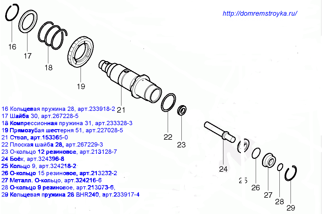 Очень часто разрушается боек поз.24, арт. 324396-8, входящий в состав ствола. металлическое кольцо поз.27. арт. 324216-6.