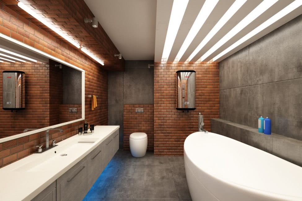 Какая сантехника и мебель будет гармонично смотреться в интерьере ванной с дизайном лофт: