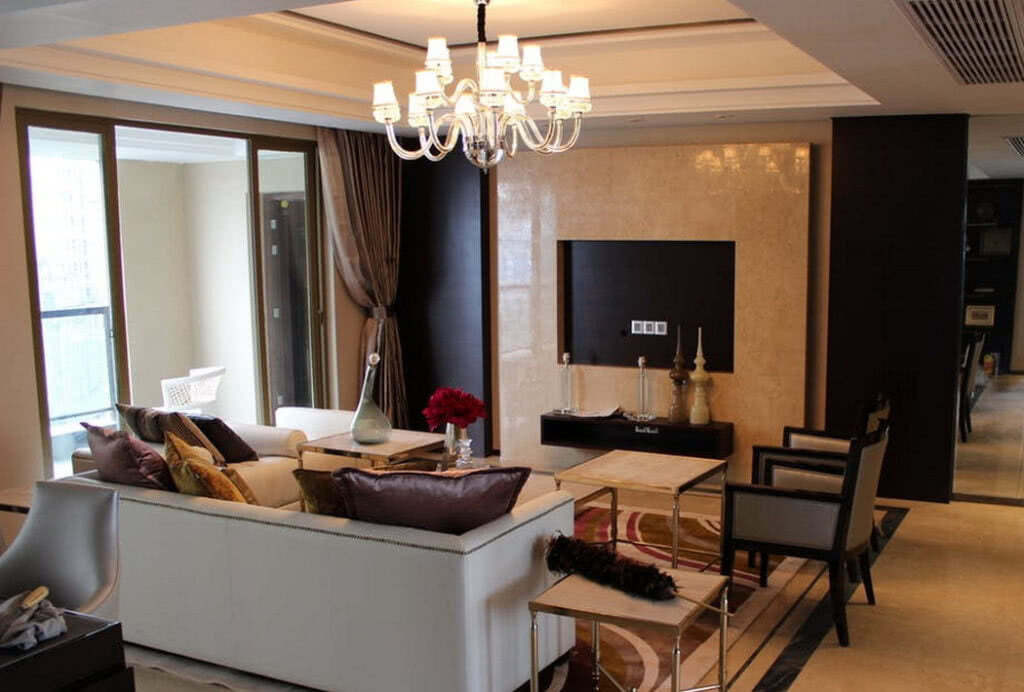 Чаще всего требуется разделить места для отдыха и для приема пищи. Красивая ширма или стильная перегородка из стекла способны решить эту проблему и добавить функциональности в помещение. Материалы лучше подбирать под основные цвета и формы мебели в гостиной.