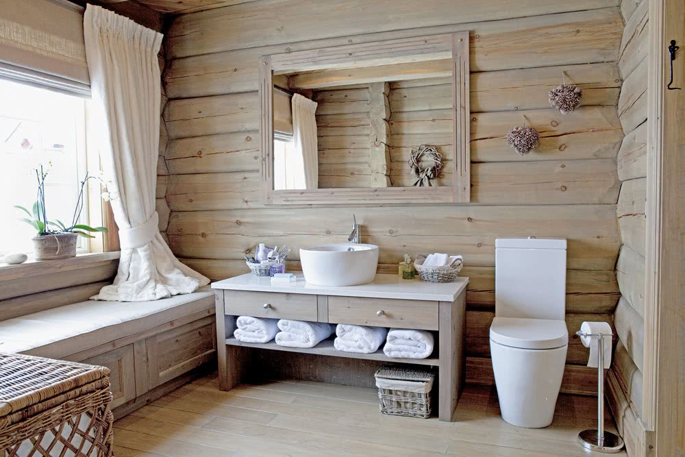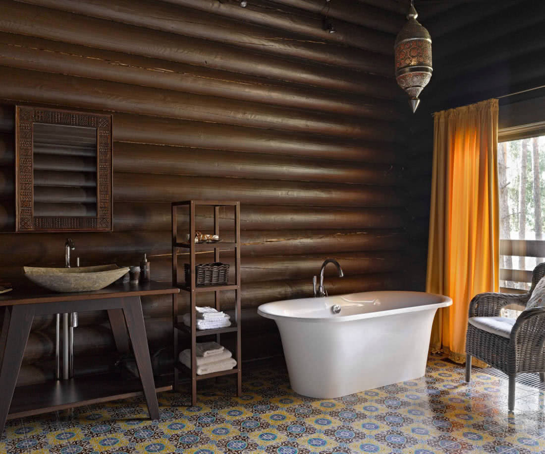Однако не все полы в деревянном доме должны быть деревянными. Например, деревянный пол в ванной долго не проживет, так как это зона повышенной влажности. Поверх чернового деревянного пола необходимо уложить влагостойкое покрытие – керамическую плитку, мозаику, керамогранит, влагостойкий ламинат или линолеум