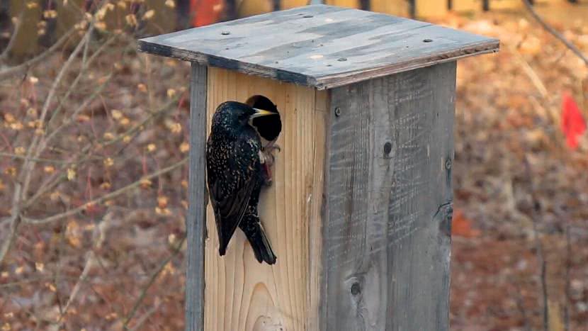 И скворцы, и синицы эффективно уничтожают садовых вредителей, но у них есть свои особенности. Скворцы в течение дня более 300 раз прилетают к гнезду для кормления птенцов. Они могут извлекать насекомых даже из верхнего слоя почвы, чего не умеют делать другие виды птиц. Но за добычей они предпочитают летать в ближайший парк или лес.
