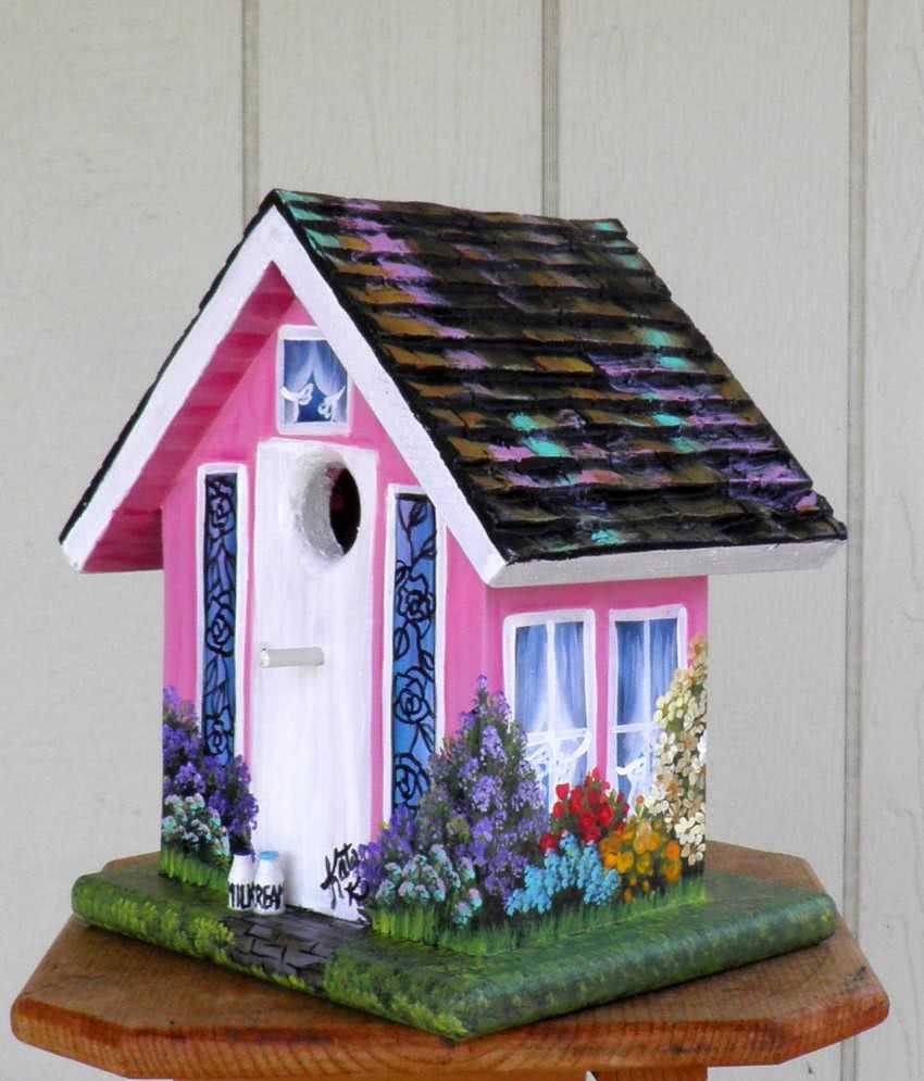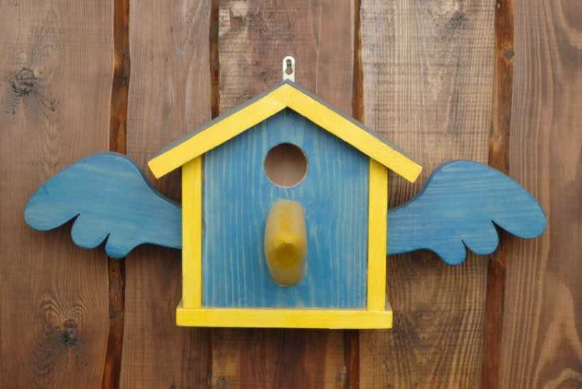 Некоторые дачники используют конструкции в декоративных целях, чтобы украсить участок и сделать его более уютным. Такие скворечники можно разрисовать, как угодно, наклеить на домик различные безделушки. Подобные конструкции могут находиться не только снаружи, но и внутри дома, украшая собой интерьер. В этом случае материал для изготовления может быть любым. Декоративные делаются даже из бумаги или картонных коробок, ведь они не будут использоваться птицами.